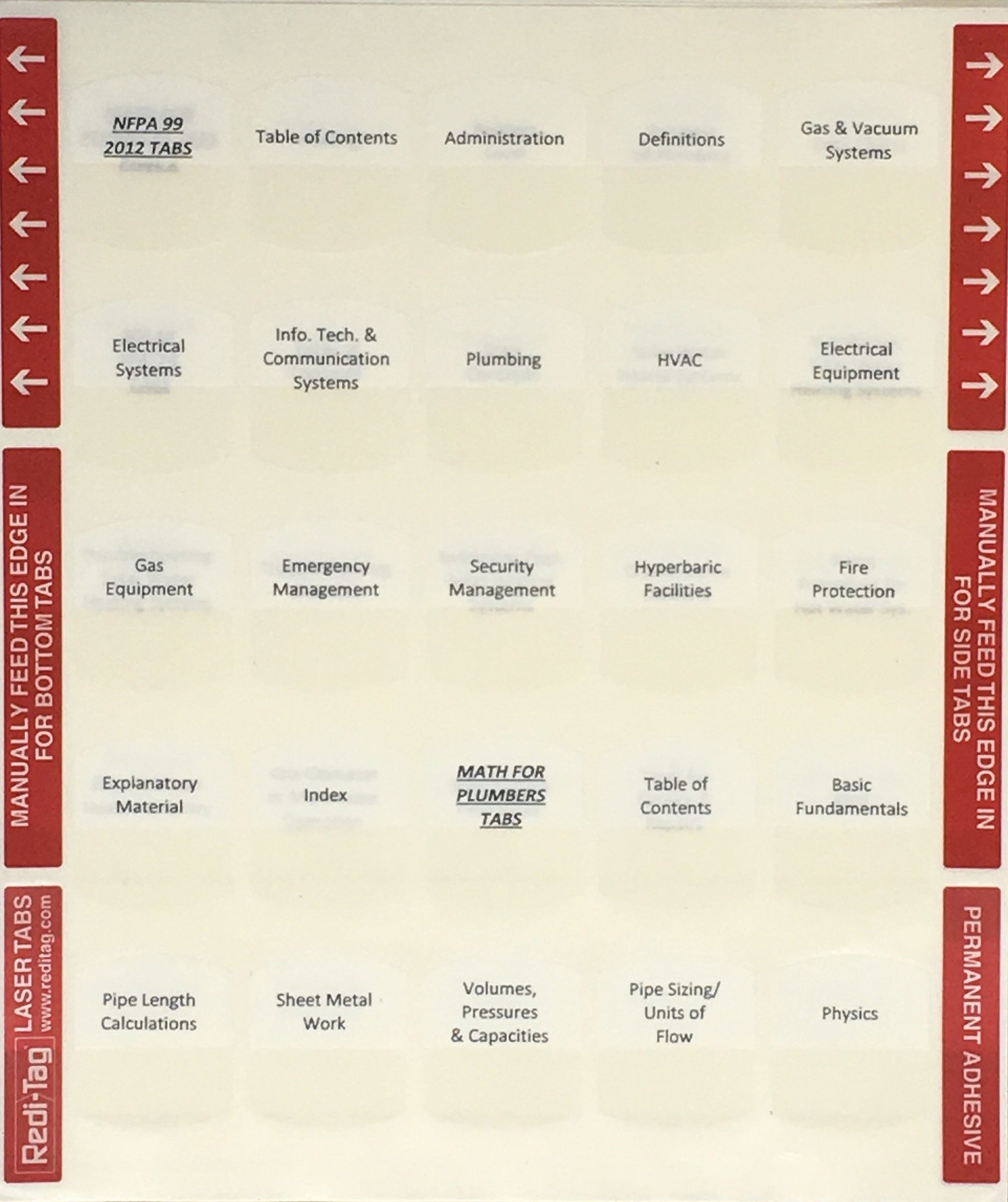 Pre-Printed Tabs for Florida State Plumbing Book Package; Tabs Only