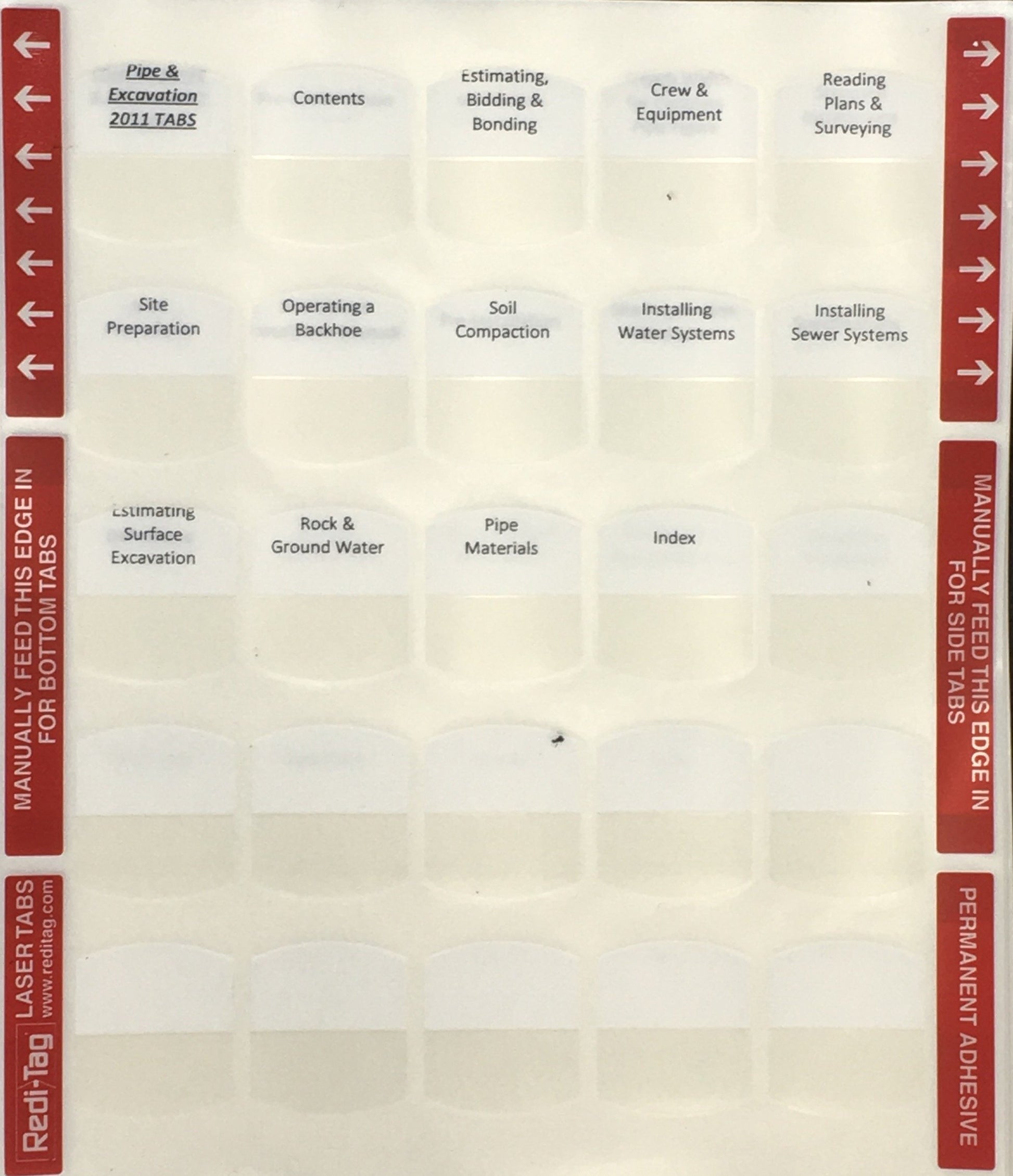 Pre-Printed Tabs for Florida State Underground Utility Book Package; Tabs Only